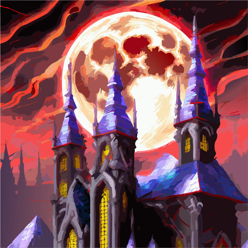 Silent, underneath the blood red moon.Red moonlight flickered off shiny black stone.